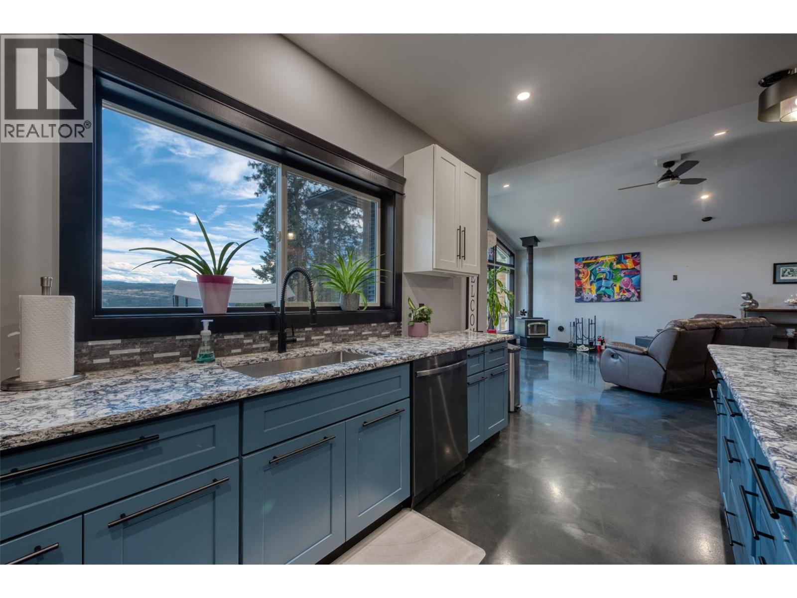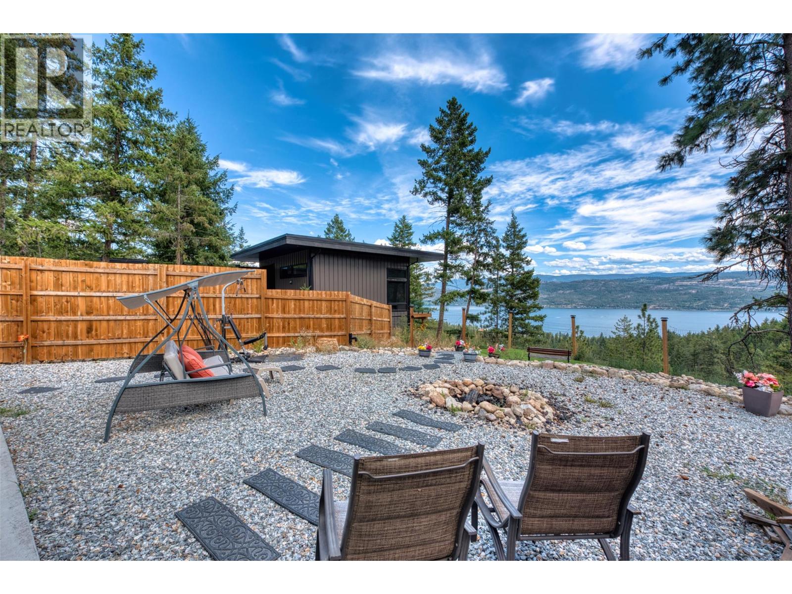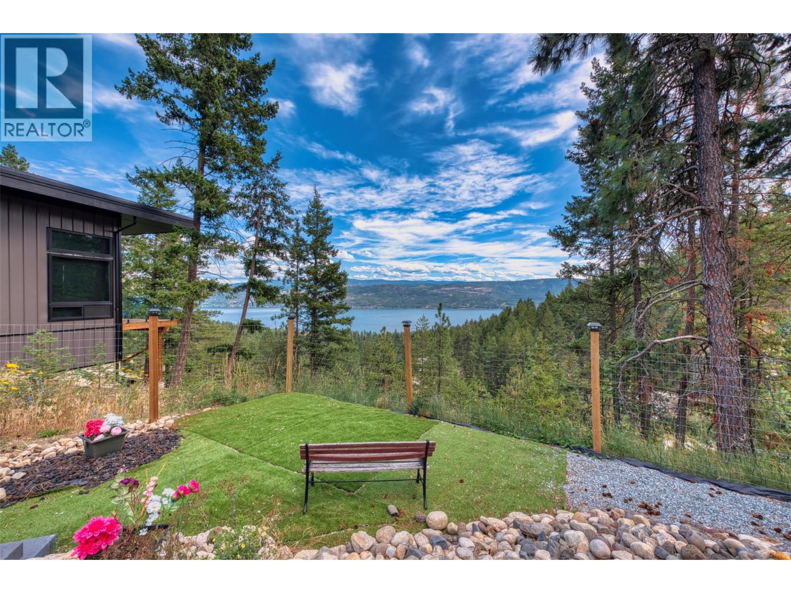 Crown land, lake views, and net-zero living — all in one package! Nestled in the serene wilderness, 10795 Westshore Road offers the ultimate private country retreat with breathtaking valley and Okanagan Lake views. This 2020-built home sits on a 0.57-acre lot, surrounded by crown land forest for unmatched tranquility and privacy. Step inside and you’re greeted with sleek metallic epoxy floors and a bright, airy living space flooded with natural light from expansive south-facing windows. The kitchen with 97% quartz countertops will impress, while the cozy wood-burning fireplace creates a warm, inviting ambiance on cooler evenings and winter. For summer comfort, the home is equipped with three ductless A/C units. Outdoor living is just as impressive with a concrete patio with hot tub, and a fully fenced yard with xeriscaped landscaping, situated in the forest for a private oasis, perfect for entertaining or quiet relaxation. This home is also a true net-zero property, powered by 22 solar panels that drastically cut utility costs. It was engineered with fire-safe metal siding, a metal roof, hardie board accents and radiant in-floor heating. Add in a 200-amp service, 60-amp garage panel (EV/workshop ready), and a generator panel already set up, and you have a property that’s efficient, future-proof, and built to last. Blending modern sustainability, fire-smart construction, and luxury finishes, this is country living redefined. (id:58842)