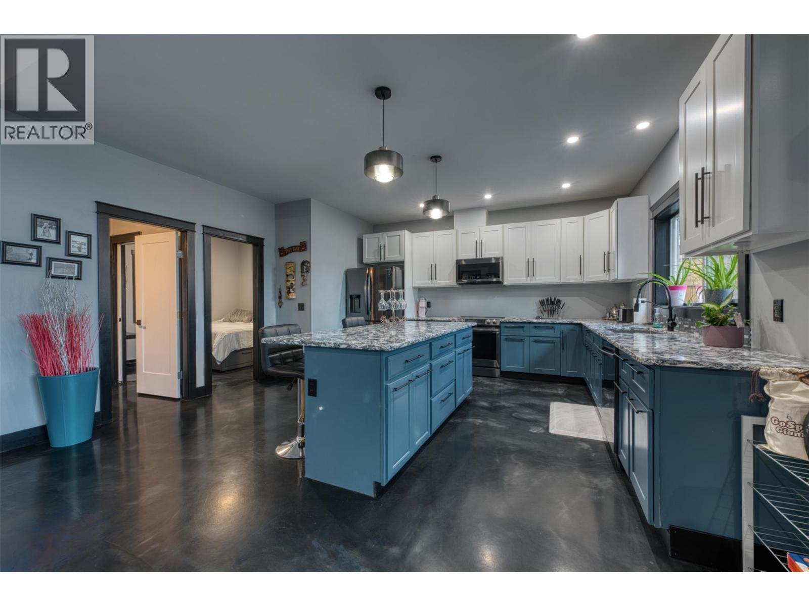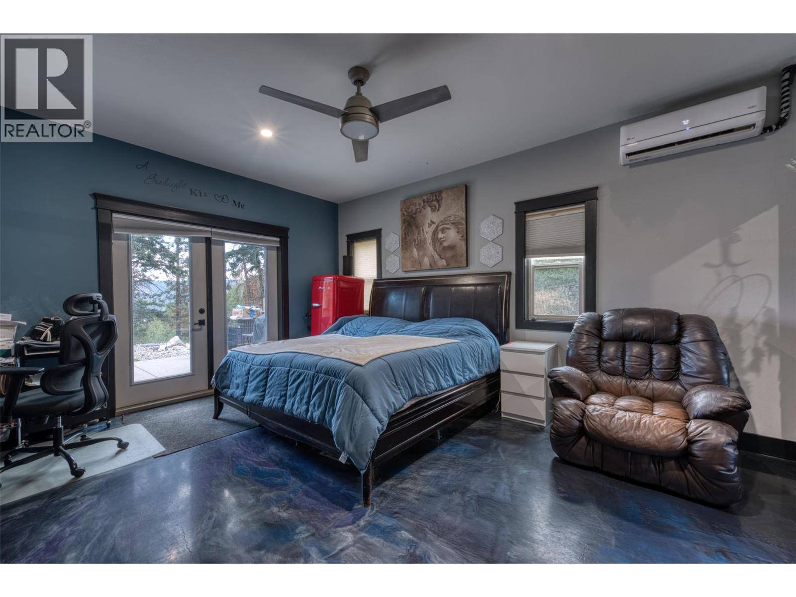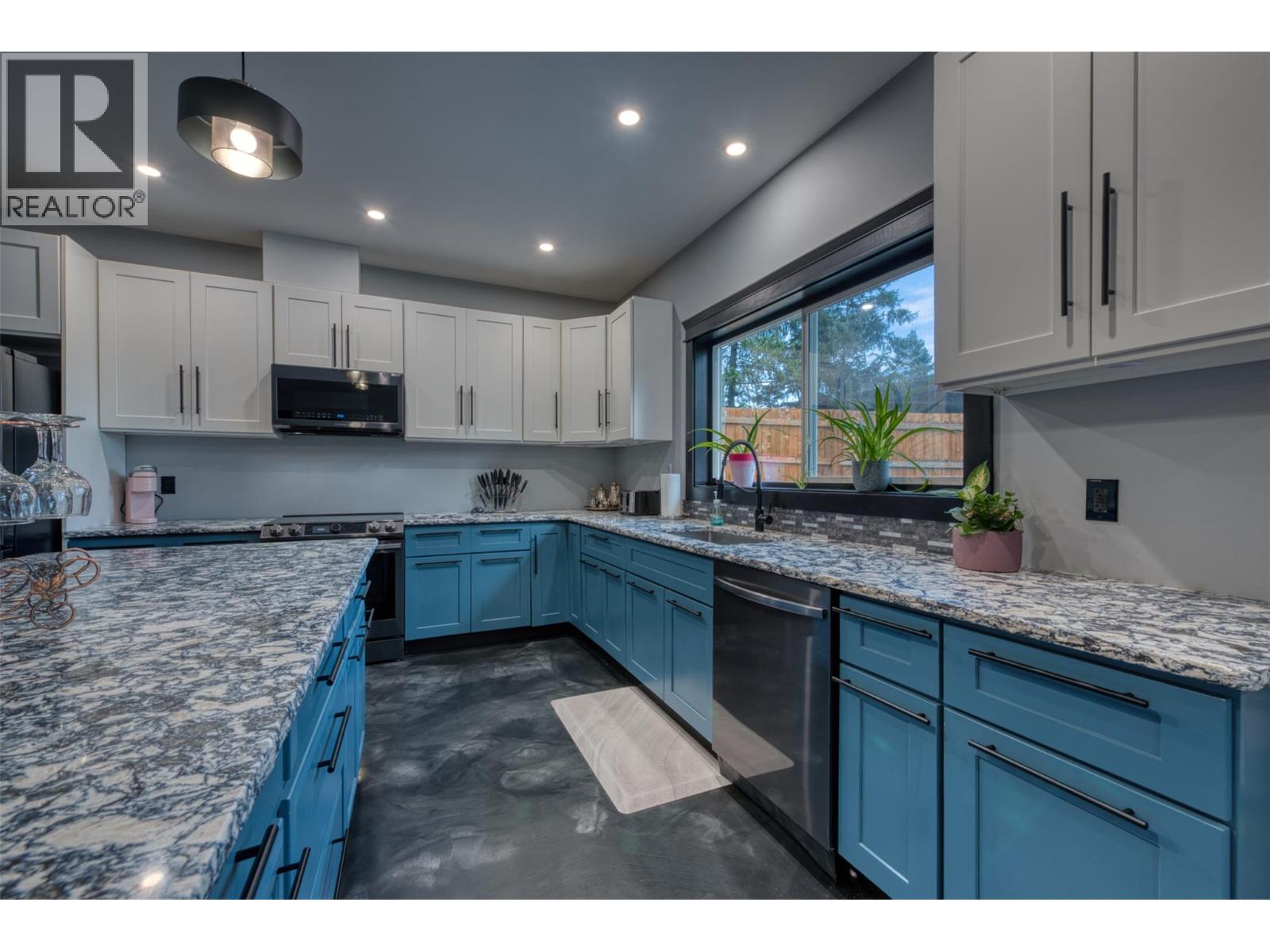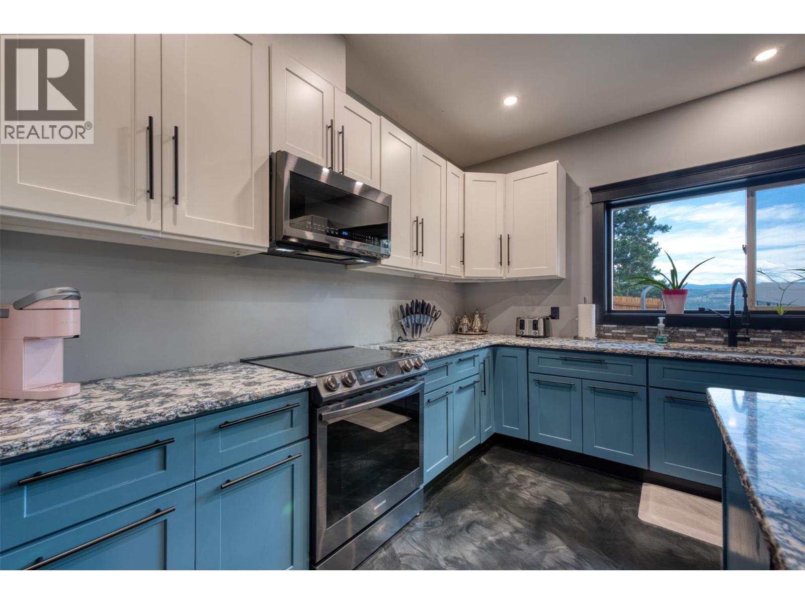 Crown land, lake views, and net-zero living — all in one package! Nestled in the serene wilderness, 10795 Westshore Road offers the ultimate private country retreat with breathtaking valley and Okanagan Lake views. This 2020-built home sits on a 0.57-acre lot, surrounded by crown land forest for unmatched tranquility and privacy. Step inside and you’re greeted with sleek metallic epoxy floors and a bright, airy living space flooded with natural light from expansive south-facing windows. The kitchen with 97% quartz countertops will impress, while the cozy wood-burning fireplace creates a warm, inviting ambiance on cooler evenings and winter. For summer comfort, the home is equipped with three ductless A/C units. Outdoor living is just as impressive with a concrete patio with hot tub, and a fully fenced yard with xeriscaped landscaping, situated in the forest for a private oasis, perfect for entertaining or quiet relaxation. This home is also a true net-zero property, powered by 22 solar panels that drastically cut utility costs. It was engineered with fire-safe metal siding, a metal roof, hardie board accents and radiant in-floor heating. Add in a 200-amp service, 60-amp garage panel (EV/workshop ready), and a generator panel already set up, and you have a property that’s efficient, future-proof, and built to last. Blending modern sustainability, fire-smart construction, and luxury finishes, this is country living redefined. (id:58842)
